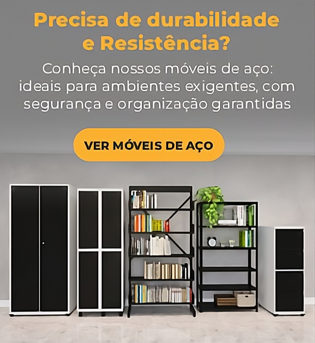 Organize seu ambiente de trabalho com praticidade e estilo. Nossos armários oferecem soluções inteligentes para armazenar documentos, materiais e objetos, unindo funcionalidade, durabilidade e design moderno para otimizar seu espaço.